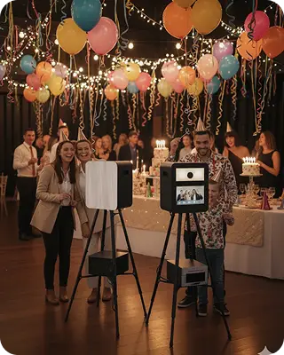 Créez des souvenirs inoubliables avec Happybooth : une borne photo ou photobooth moderne et élégant, livré et installé sur le lieu de votre événement. Impressions instantanées, partage numérique et une expérience sans stress pour vous et vos invités.
